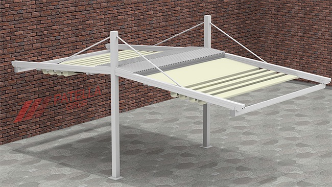 Patella Alfa 16 Ön Ayaklı Düz Eğimli Motorlu Pergola Sistemi, modern hatlardaki eşsiz tasarımı ve güçlü yapısıyla sizlere üst seviyelerde konfor sunmaktadır.