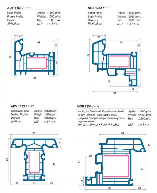 Akıllı Profil Geometrisi, estetik, fonksiyonellik ve ekstra odacık; 6 odacık kasa ve orta kayıt, 7 odacıklı kanat ve kapı kanatları.