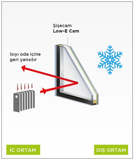 - Sıradan çift camlara kıyasla ısı kayıplarını % 50 azaltır ve yakıt masraflarını düşürür.