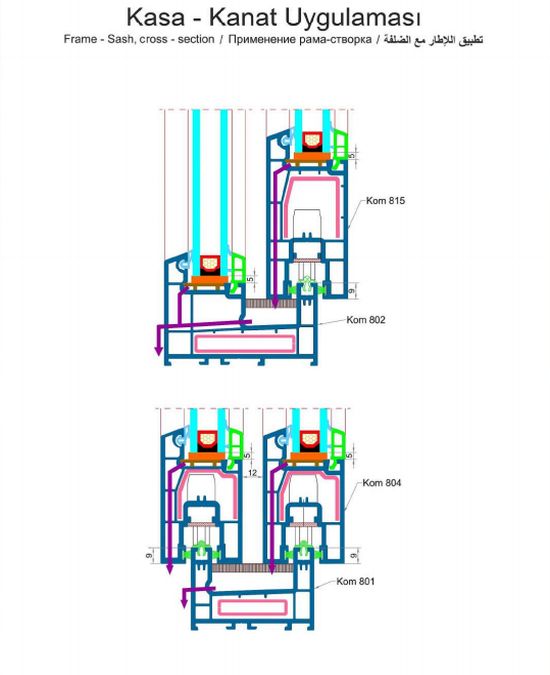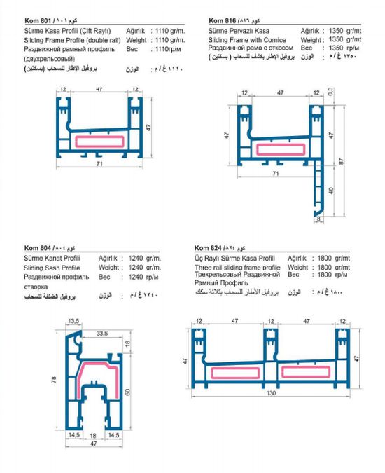 KOM 800 FORMLINEFormline, tek ve çift raylı kapı pencere sistemleri 4 mm.'den, 20 mm.'ye kadar cam takma seçenekleri ile yüksek oranda ısı tasarrufu ve ses yalıtımı sağlar.Yatay olarak hareket eden kanat sistemi ile yer kayıplarını da ortadan kaldırır.Kasa profillerinin duvar bağlantısındaki özel tırnakları montaj kolaylığı sağlar. Ayrıca köşelerde 45 derece kesilen çıtalar evinizi ferahlatır.Serideki çift raylı sistemlerin kanatları 2'li, 3'lü ve 4'lü hareket ederek istenildiğinde sisteme sineklik, kanat ve panjur entegre edilmesine imkan sağlar.Formline serisi, tasarım, değişik folyo, renk ve desen seçenekleri ile evinizdeki konfor ve rahatlığı maksimize eder.